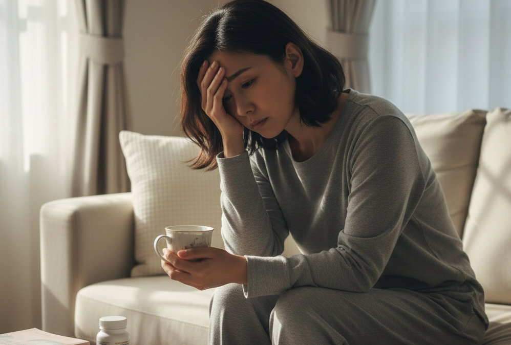 おこる症状に、動悸、めまい、冷え、のぼせ、頭痛、腹痛、