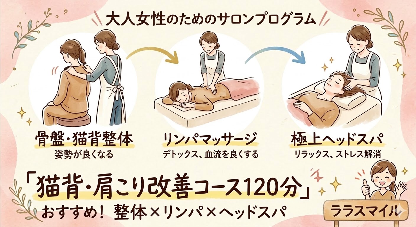 猫背肩こり改善コース120分がおすすめです♪